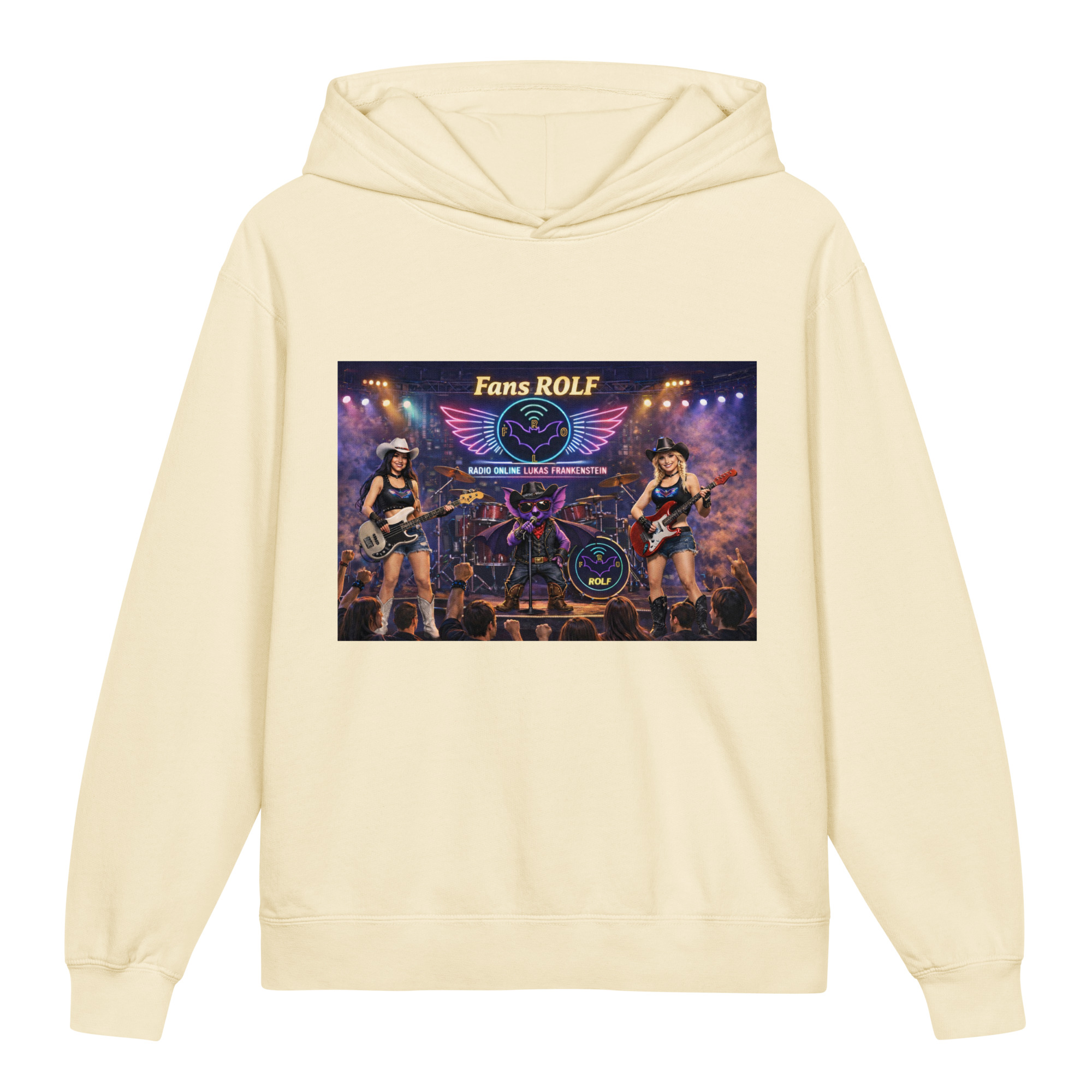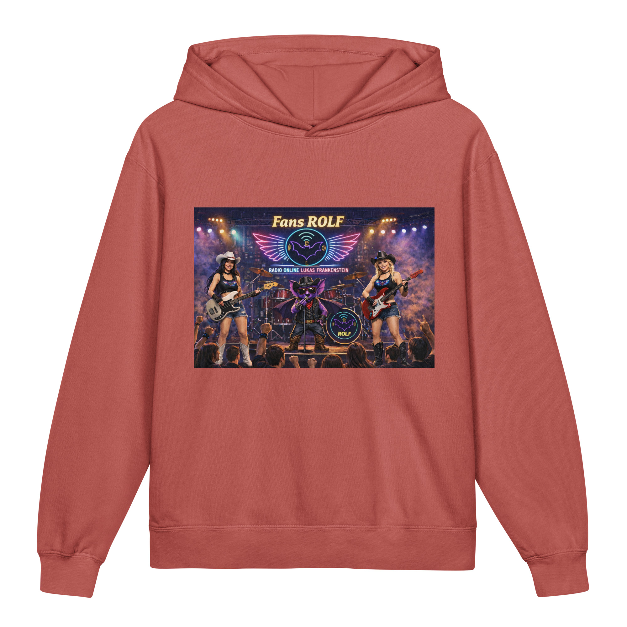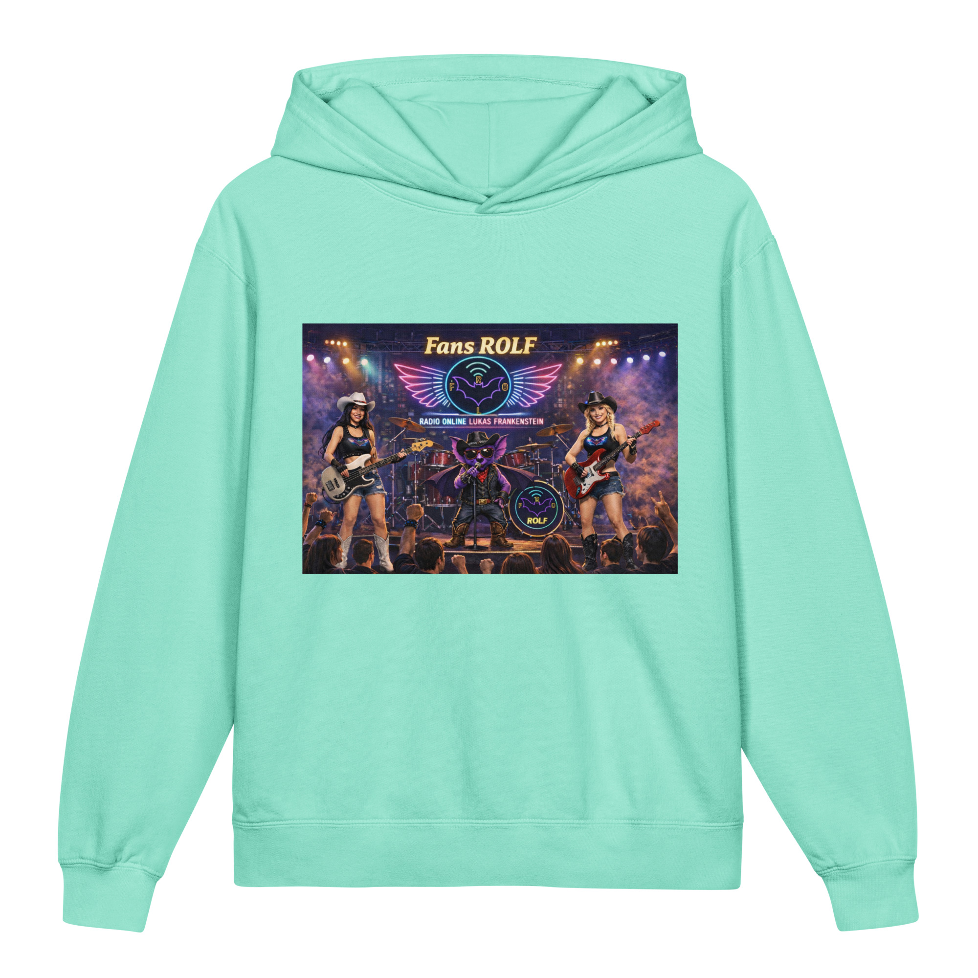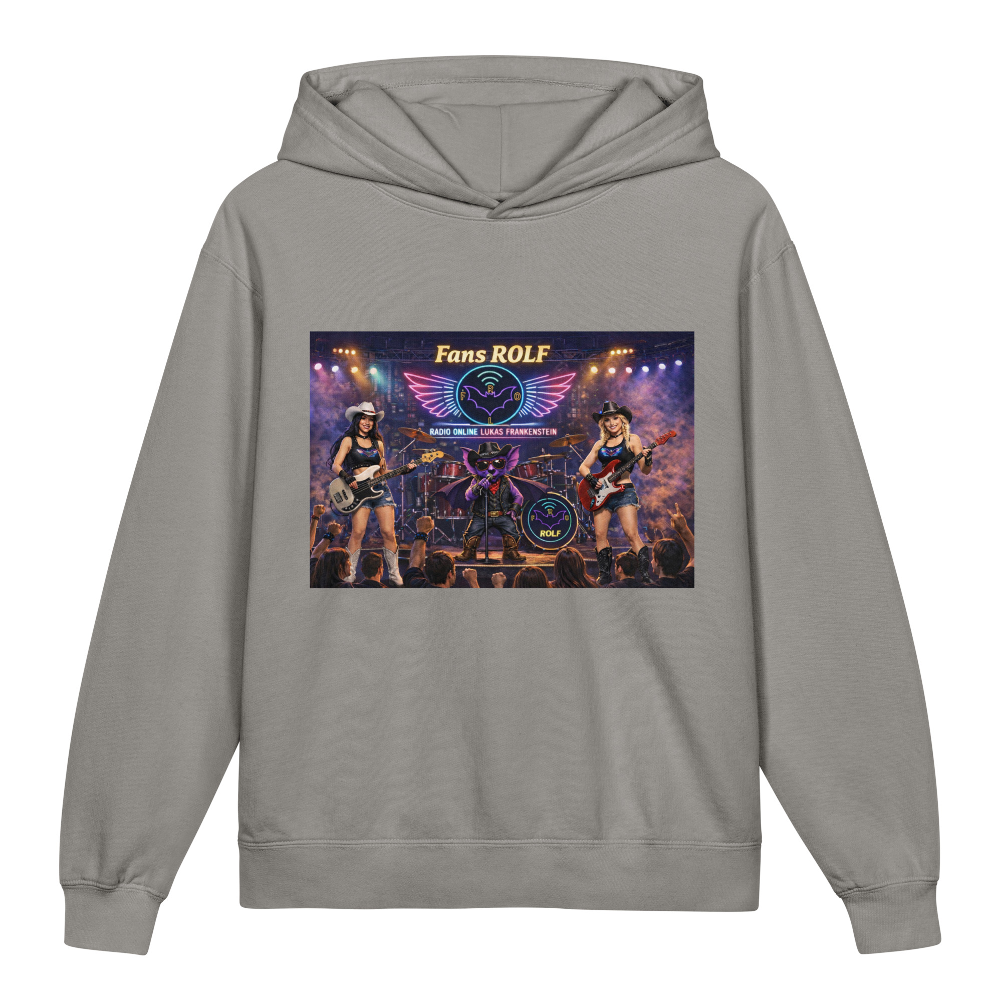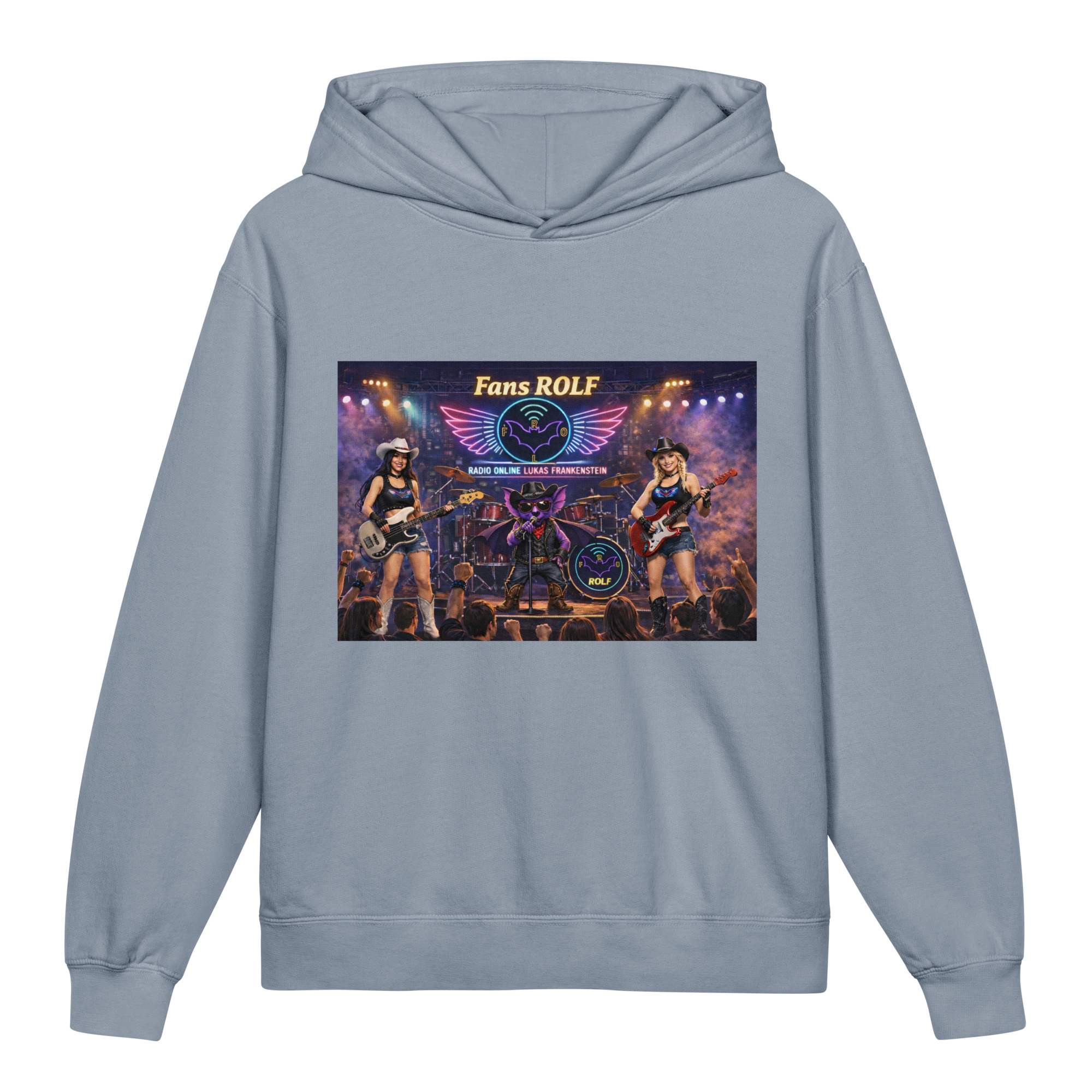 ⭐️Na przodzie jest grafika bohatera radia i reprezentanta nietoperza Gacka podczas koncertu jako wokalista ze swoim zespołem przed fanami. Bluza jest szczególnie polecana dla fanów Radia Online Lukas Frankenstein m.in. z grupy Facebooka, której nazwa to: FANS ROLF.